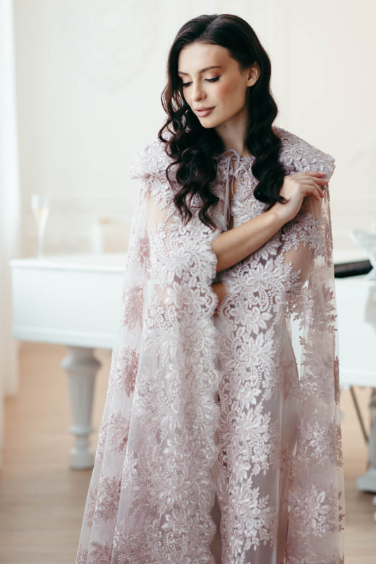 Blush Lace Wedding Cape – Romantic Lace Cloak