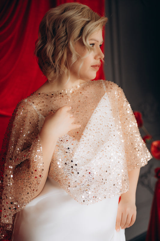 Beaded Wedding Cape - Gold Sequined Bridal Cover Up