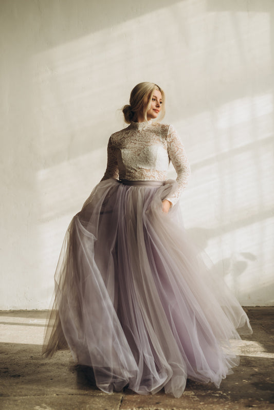 Cassie Ombre Tulle Wedding Skirt | Lilac & Grey