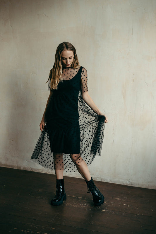 Camilla Wedding Dress | Black Polka Dot