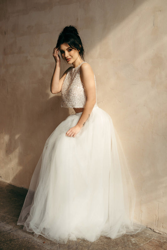 Ivory Beaded Bridal Topper - Sleeveless Crop Top